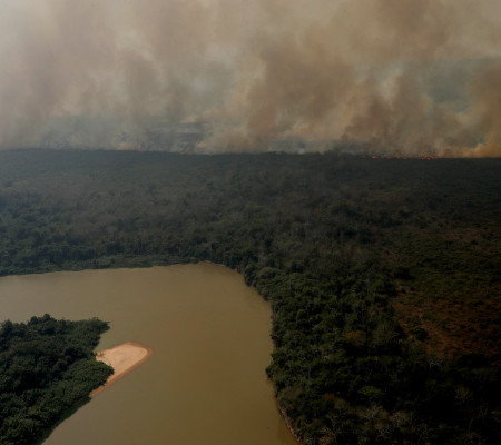 Queimadas sobre a vegetação ao redor do rio Cuiabá, no Pantanal | Foto: Amanda Perobelli/Reuters