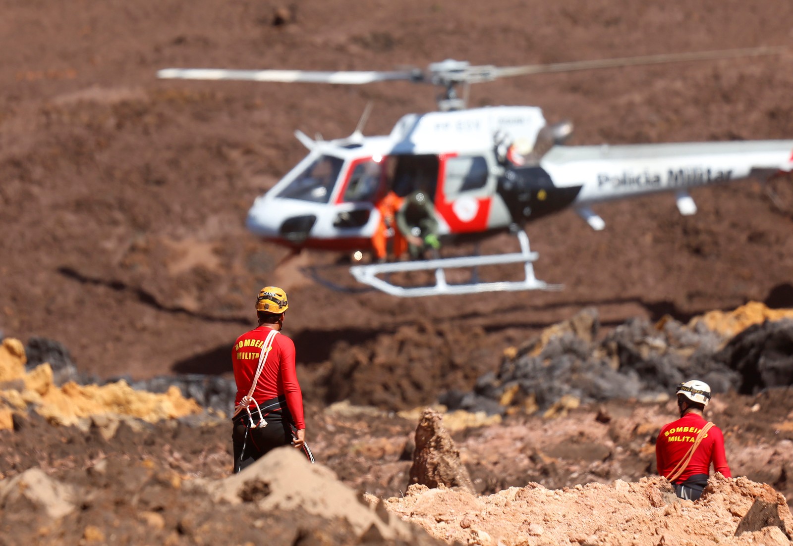 Os bombeiros têm de fazer um trabalho milimétrico numa imensa área de lama. Os corpos e destroços estão espalhados por uma extensão de 9 km, entre a barragem rompida e o rio Paraopeba.