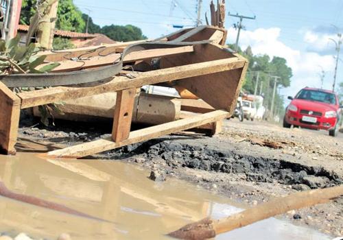 Já nas proximidades do Bairro Promorar, os buracos na pista de rolamento são constantes, com áreas onde já é possível visualizar perda de asfalto. Com as chuvas, os pontos de alagamento e lamaceiros são uma certeza.