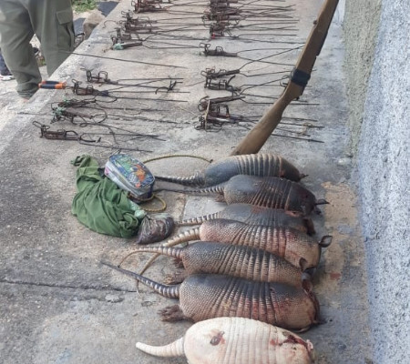 De acordo com as informações, os agentes avistaram rastro de motocicletas em direção ao Parque, que após andar em torno de 8km, um dos caçadores que retornava da caça foi abordado e preso por se encontrar com três tatus abatidos e dez espingardinhas de tatus. A equipe continuou no local até sair mais 02 caçadores, que também foram presos por estarem com 03 tatus e 28 espingardinhas de tatus.