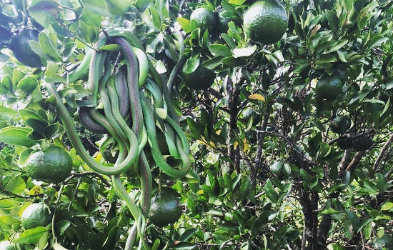 Em abril do ano passado, Telmo Santos registrou, no município de Santo Antônio da Patrulha (RS), um ‘cacho’ de cobras-verde penduradas sob o galho de uma laranjeira. A foto foi parar em um grupo no Facebook, na tentativa de entender qual fenômeno era aquele. O que ele não imaginava, porém, era que estava colaborando com a ciência: o comportamento compartilhado nas redes sociais foi descrito em uma nota científica de história natural na revista Herpetological Review, um periódico que reúne informações fundamentais para a compreensão da biologia das serpentes. As informações são de Giulia Bucheroni, Terra da Gente/g1.