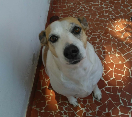 A cadela foi resgatada das ruas há cerca de três anos, e desde então virou o xodózinho da família. Ela adora receber carinho e dá toda a atenção para quem passa em frente a sua casa.