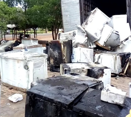 O Corpo de Bombeiros foi acionado, mas quando chegou o fogo tinha sido controlado pelos moradores. A carga tinha seguro e 20 freezers não foram atingidos pelo fogo.