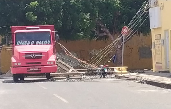 Um caminhão caçamba derrubou um poste, na manhã desta segunda-feira (01) e interrompeu o fornecimento de energia nos bairros Mocambinho 2 e Vila São Francisco, localizados na zona Norte de Teresina.