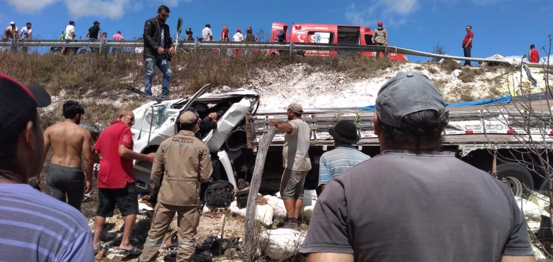 O motorista do veículo de carga foi identificado por Sérgio Alexandrino Feitosa, de 40 anos, que ficou ferido e preso nas ferragens.