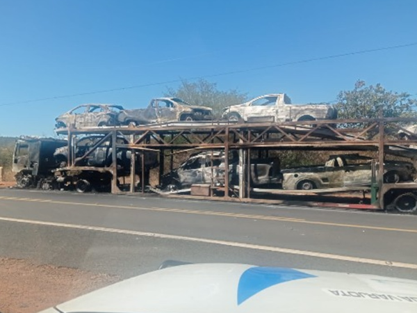 Caminhão-cegonha pega fogo e carros são destruídos no interior do Piauí - Foto: Reprodução/Mural da Vila
