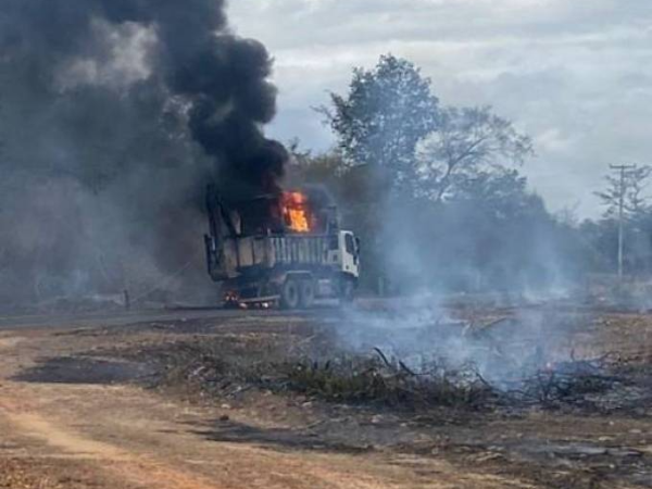 A caçamba transportava uma máquina retroescavadeira que estava em manutenção em Palmeirais, que também pegou fogo no incidente.