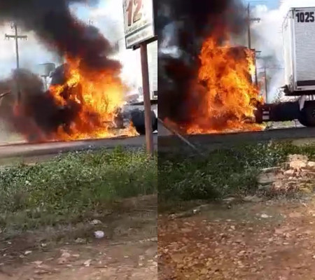 No início da tarde desta sexta-feira (25) um caminhão pegou fogo na BR-343, na altura do município de Altos, localizado a aproximadamente 40 km de Teresina. O motorista disse o fogo surgiu do nada e ele saiu imediatamente do veículo na rodovia BR-343. Segundo ele, o incêndio foi provocado pelo vazamento de óleo.