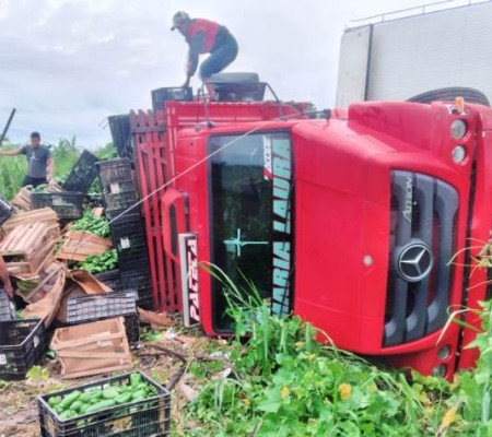 Uma carreta carregada de frutas tombou após acidente ocorrido na rodovia BR-222, no final da tarde de domingo (16/05), na divisa dos estados do Piauí com o Ceará. Eduardo Sérgio, natural de Campo Maior, que dirigia a carreta, ficou ferido, mas apenas com escoriações leves. Outros dois veículos se envolveram na colisão.