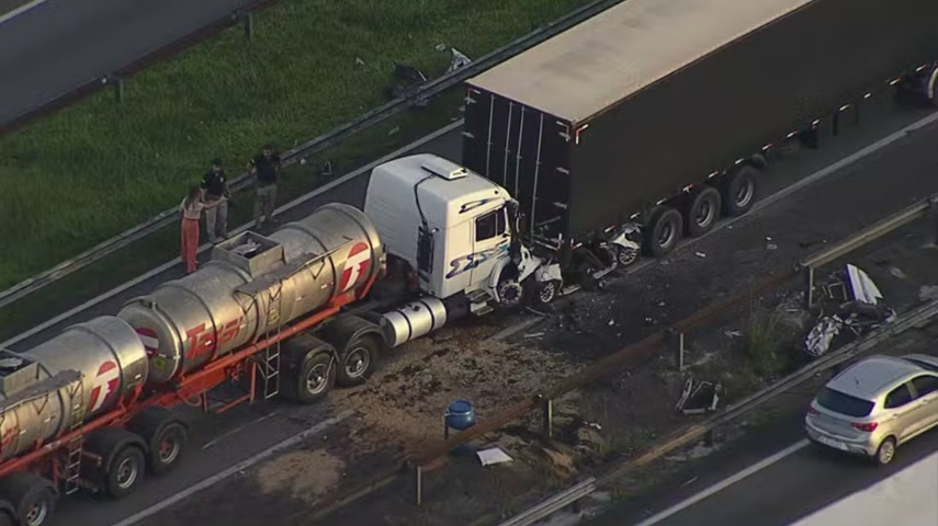 Na noite desta segunda-feira (15), um trágico acidente na Via Dutra, no trecho de São Paulo, resultou na perda de três vidas e deixou dois feridos. Por volta das 22h, em meio a um congestionamento, um caminhão colidiu na traseira de uma carreta, comprimindo um veículo de passeio que transportava cinco pessoas.