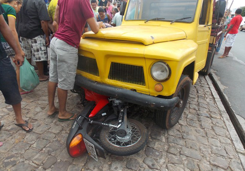 Aline saia de uma panificadora e ao entrar na BR foi colhida pela camioneta que a arrastou junto com a moto por quase oito metros. O motorista da caminhoneta evadiu-se, deixando o carro no local do acidente.