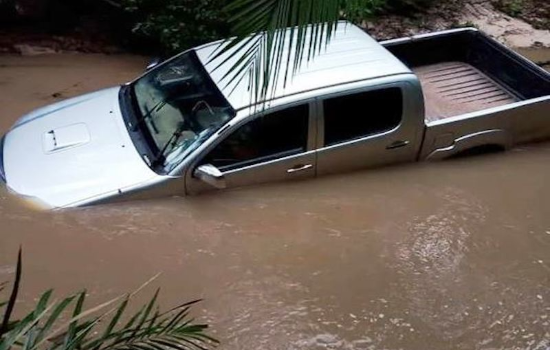 Uma caminhonete, modelo Hilux, quase foi arrastada por uma tromba d'água na última quarta-feira (17/03), na zona rural de Barras, no Norte do Piauí.
