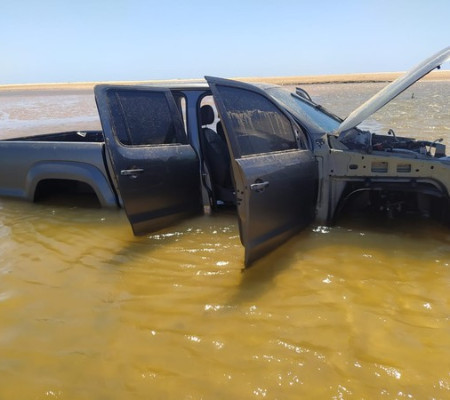 Uma caminhonete roubada no último sábado (08) na praia de Macapá, foi encontrada 'depenada' e  atolada no mar da praia de Pedra do Sal, região conhecida como Pontal, no município de Parnaíba, litoral do Pauí.