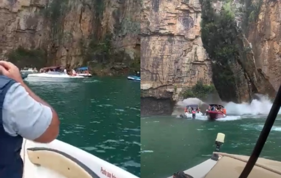 No registro é possível ver outros turistas chamando atenção para as pedras se desprendendo no cânion. Alguns ainda pedem para as lanchas de trás afastarem e quando menos se espera, a rocha cai e atinge ao menos 3 embarcações.