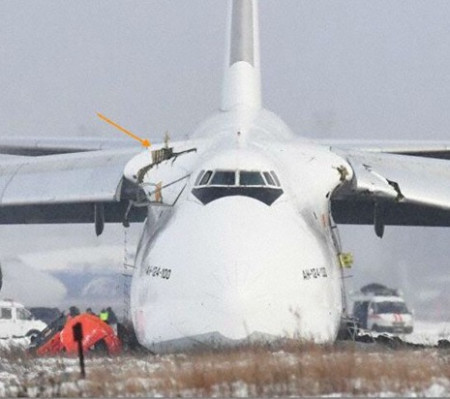 Um dos maiores aviões do mundo, resultado de um projeto soviético, o Ruslan precisou retornar para uma tentativa de pouso na mesma pista no Aeroporto Internacional Tolmachevo, na Rússia, mas passou direto e parou a cerca de 300 metros do fim dela.