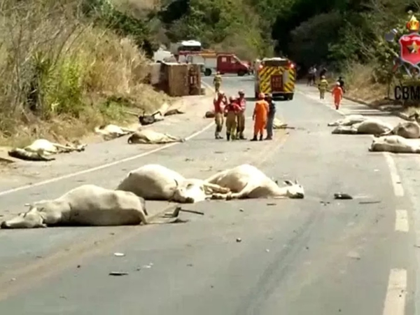 Quando o motorista da carreta percebeu a presença dos animais, ele tentou evitar a batida, mas não conseguiu desviar de todos os bois, matando 21 deles e capotando.