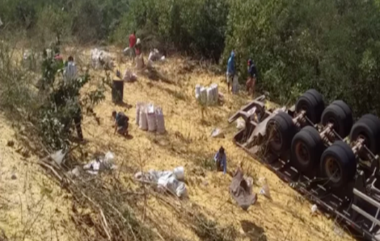 Uma carreta carregada de milho tombou na PI-140, entre as cidades de Canto do Buriti e Tamboril do Piauí, na tarde de quarta-feira (08/06). Populares saquearam parte da carga que ficou espalhada às margens da estrada.