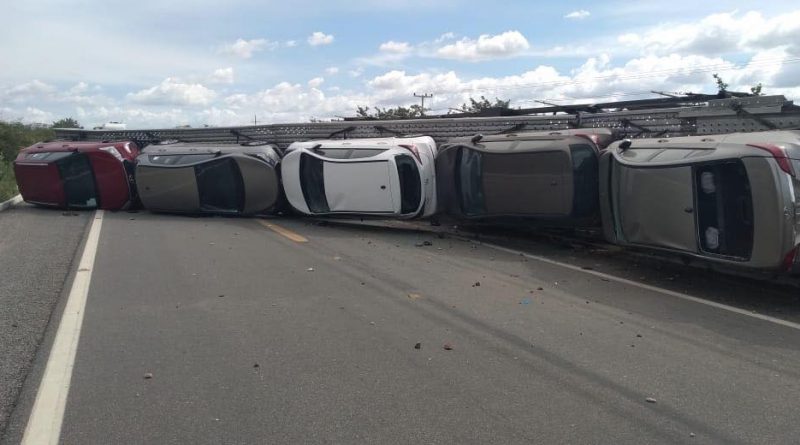 Mais um acidente foi registrado na BR-407, especificamente, próximo à entrada da localidade Cachorro, zona rural do município de Jacobina do Piauí. O acidente ocorreu na tarde deste domingo, 03, envolvendo uma carreta cegonha carregada de veículos novos.