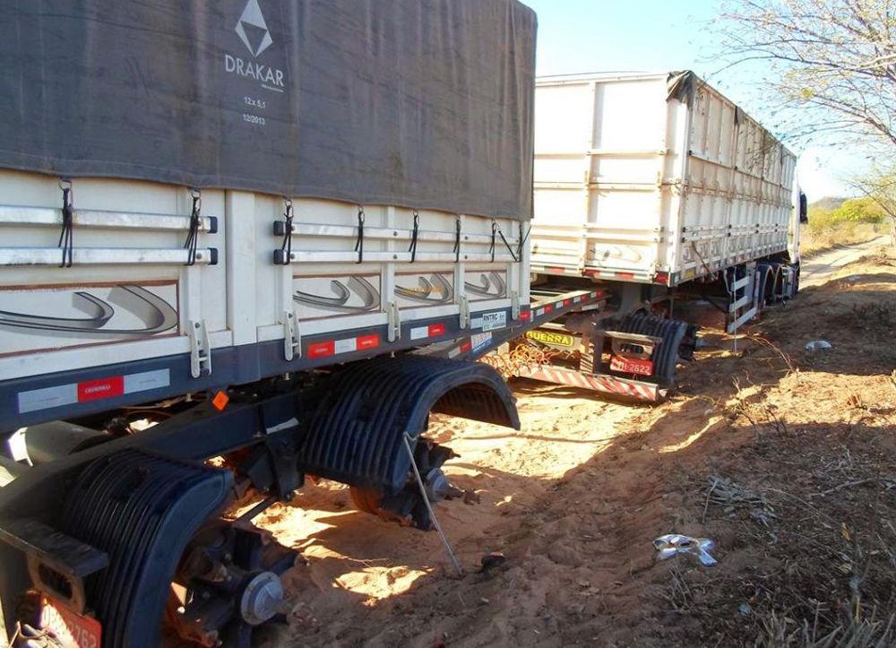 Uma carreta Volvo, placa OEE-8642 de Oeiras-PI, conduzida pelo motorista I.C.F, foi alvo de assalto, nesta sexta-feira, 08 de agosto. Os ladrões renderam o motorista e levaram a carga de trinta pneus, rodas e o combustível do tanque do caminhão.