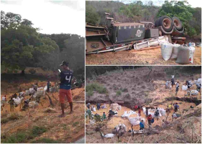 A carga foi saqueada em pouco tempo por dezenas de pessoas, o motorista foi socorrido apenas com ferimentos leves e não corre risco de morte. Ainda não foi divulgado pela polícia as causas do acidente.