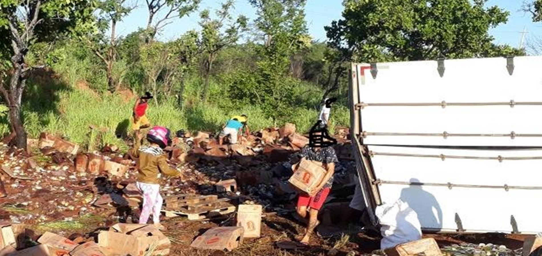 A carga que estava no veículo passou a ser saqueada por moradores em carros, motos e bicicleta. Pessoas iam e voltavam para buscar mais, sem nenhuma preocupação.