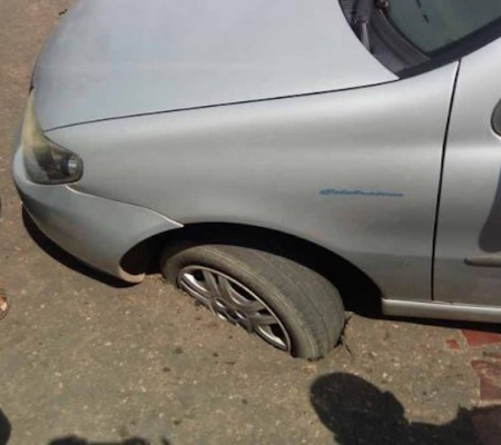 O motorista contou que estava descendo na rua sentido ao centro comercial quando de repente viu seu carro afundar. Ainda segundo Nenego, tinha um grande vazamento de água no local onde o carro caiu.