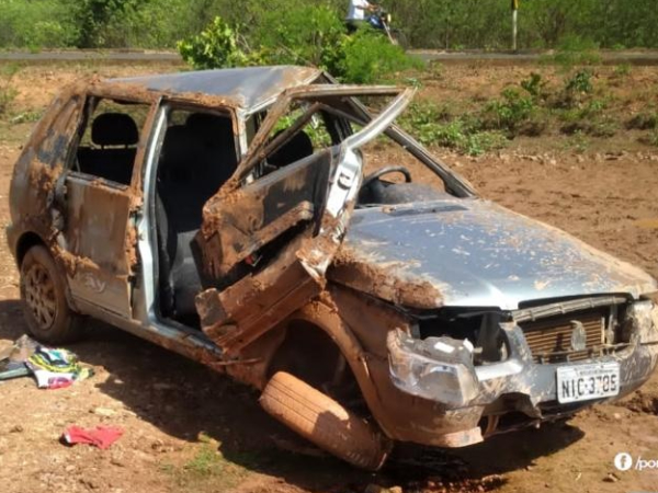 Carro com três ocupantes capota na zona rural de Novo Santo Antônio-PI - Foto: Reprodução/Tribuna em Foco