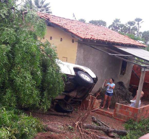 O veículo Pick-Up desceu o barranco da PI 210, próximo ao povoado Barro Vermelho, derrubou uma árvore e só parou ao colidir com uma casa destruindo uma parte dela.