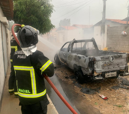 No fim da tarde de quinta-feira (09), um veículo modelo Fiat Strada, de placa LWK-9852, pegou fogo e ficou completamente destruído no bairro Piauí, em Parnaíba, no litoral do estado.