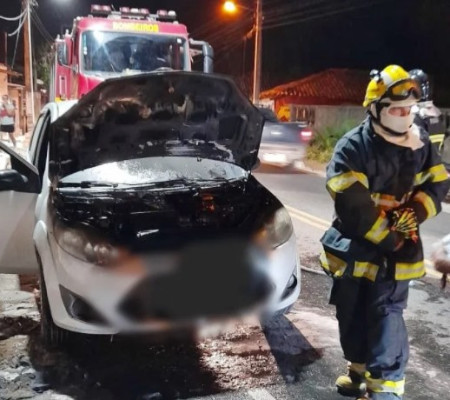 Um carro modelo Fiesta ficou parcialmente destruído após pegar fogo na noite de sábado (09), enquanto trafegava pela rodovia PI-116, no bairro Ilha Grande de Santa Isabel, no município de Parnaíba, litoral do Piauí.