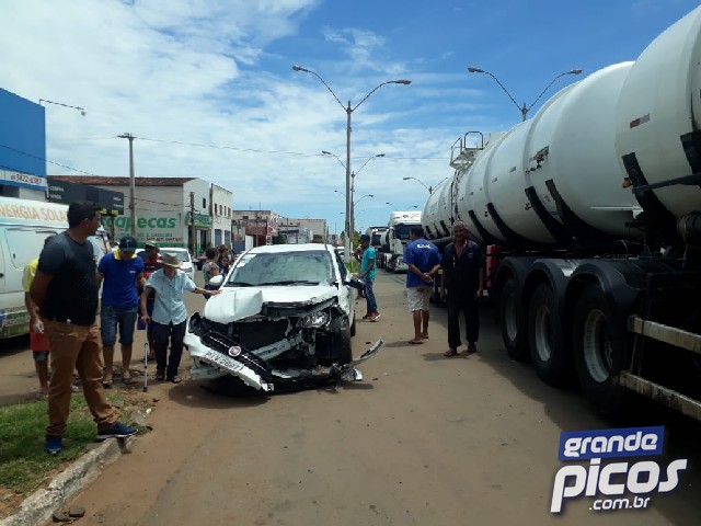 No fim da manhã desta quarta-feira (30), ocorreu uma colisão envolvendo uma carreta carregada de óleo vegetal e um veículo de passeio modelo Fiat Cronos, de cor branca, placa PIV-2887 na rotatória que fica localizada no bairro Bomba, no município de Picos.