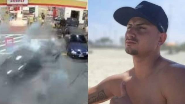 As imagens de câmera de segurança mostram que dois homens saíram do veículo envolvido no incidente e empreenderam fuga. Um deles estava utilizando uma tornozeleira eletrônica em sua perna.