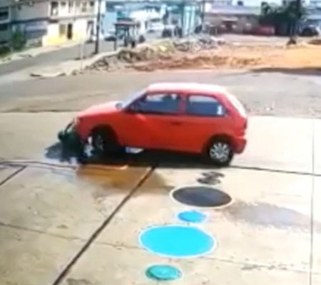 Uma câmera de segurança registrou o momento em que um carro passou por cima de um frentista, de 60 anos, que estava agachado em um posto de combustíveis, em Cascavel, no oeste do Paraná, na segunda-feira (5). Nas imagens é possível ver que o homem verificava o reservatório de água do posto, quando o motorista, que calibrava os pneus, acelerou o carro para deixar o local.