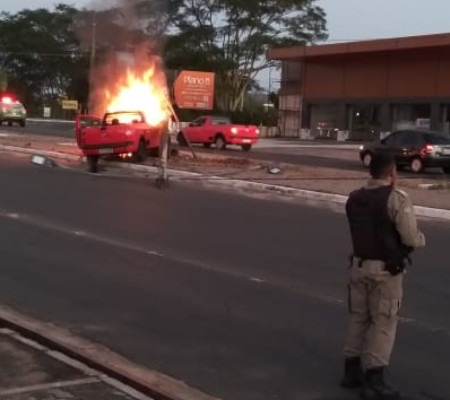 Em entrevista ao Meionorte.com, Subtenente Ramon Rodrigues, do 5 Batalhão de Polícia Militar (BPM), informou que estava passando pelo local para entrar em seu turno de serviço quando já se deparou com o carro em chamas. Segundo ele, o Corpo de Bombeiros já estava no local tentando debelar as chamas. Com a colisão, o poste ficou caído na pista.
