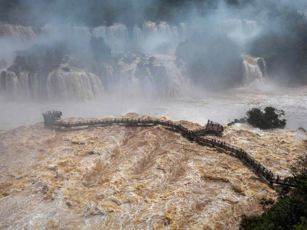 No lado brasileiro, uma passarela chegou a ser interditada, mas foi liberada e turistas aproveitaram para visitar o local durante a alta das águas.
