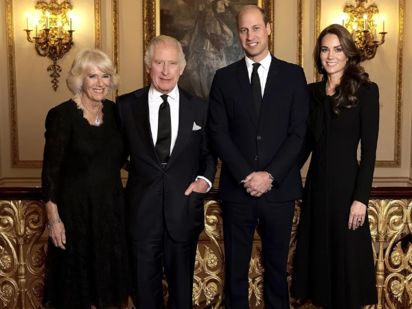 Na imagem nova, o casal aparece ao lado do herdeiro do trono, William, que assumiu o título de príncipe de Gales, e da mulher dele, Kate, que por sua vez herdou o título que era de Lady Di, princesa de Gales. Segundo a legenda da postagem, o registro foi feito pelo fotógrafo Chris Jackson em 18 de setembro no Palácio Buckingham.