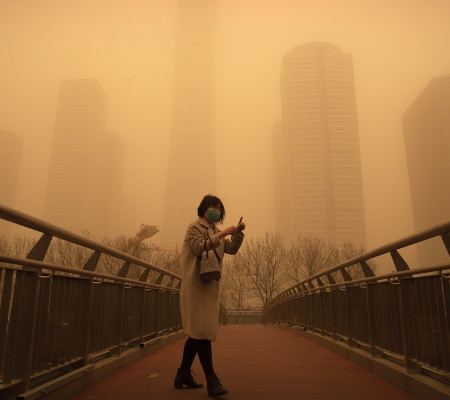 Arranha-céus no centro de Pequim ficaram praticamente escondidos em meio à poeira e à areia, e mais de 400 voos saindo dos dois principais aeroportos da cidade foram cancelados em razão dos ventos fortes e da baixa visibilidade.