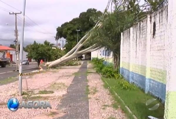 Na rua Clodoaldo Freitas, uma árvore foi arrancada pela raiz e caiu sobre o muro do estádio Lindolfo Monteiro comprometendo os vestiários.