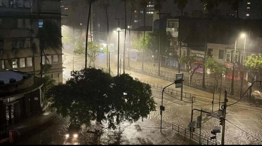 A intensidade da chuva foi significativa em um curto período, resultando em alagamentos em diversas áreas na madrugada desta quarta-feira (17)