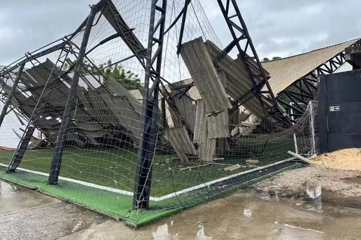Cobertura de quadra esportiva foi destruída pela força do vento em Butiá | Foto: Corpo de Bombeiros de Butiá/Divulgação