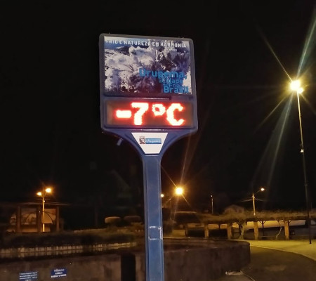 Já em Urubici, na mesma região, os termômetros chegaram a -6,2°C no amanhecer. Na cidade de São Joaquim, a menor temperatura foi de -4,16ºC. As informações são da Epagri/Ciram, órgão que monitora o tempo no Estado.