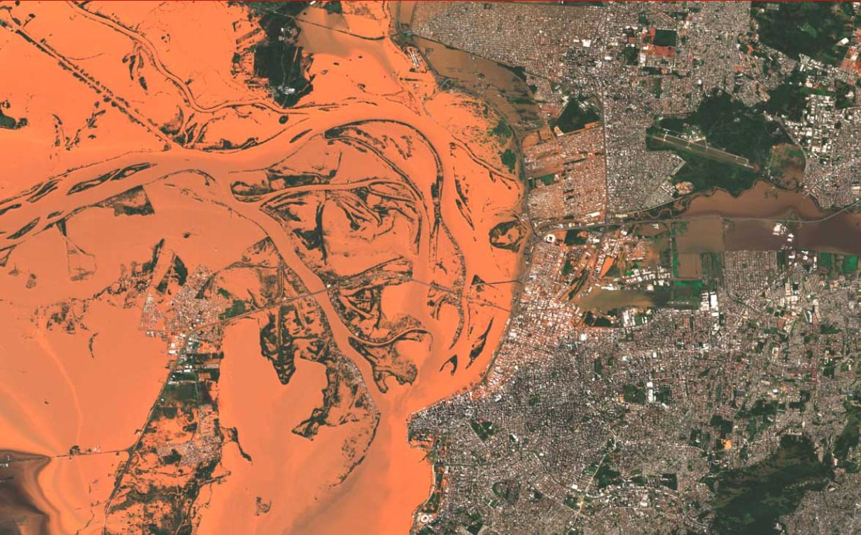 SITUAÇÃO DE PORTO ALEGRE: Porto Alegre não está entre as mais afetadas, mas as enchentes persistem devido à geografia. Na capital do Rio Grande do Sul, 368 mm caíram em 15 dias, igualando a média de três meses.