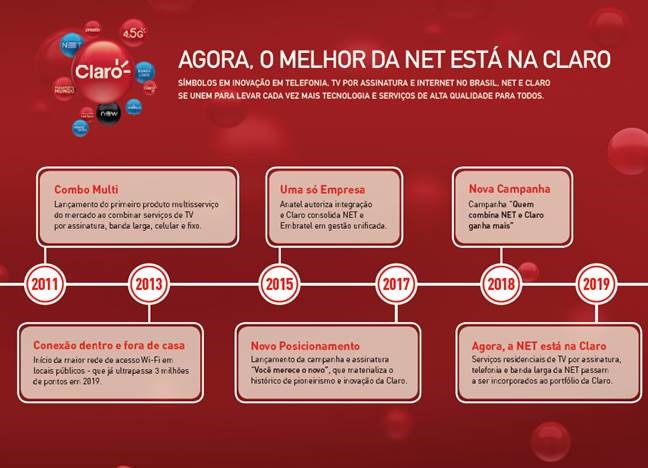 A Claro e a NET fazem parte da mesma empresa desde 2015. Antes disso, em 2011, haviam lançado o Combo Multi, oferta integrada de serviços das duas marcas. A consolidação de toda a oferta de serviços na marca Claro é um movimento alinhado às tendências tecnológicas apontadas para o setor.