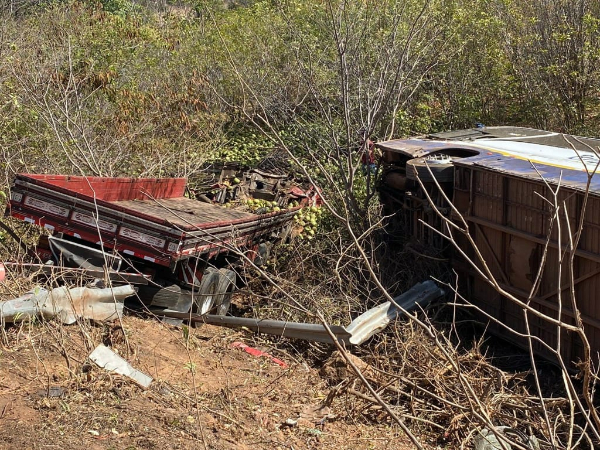 Segundo informações da Polícia Rodoviária Federal (PRF), a colisão foi lateral. Com o impacto, os dois veículos foram parar em uma ribanceira. O ônibus tombou e o caminhão, que transportava carga de coco, ficou com a cabine destruída.