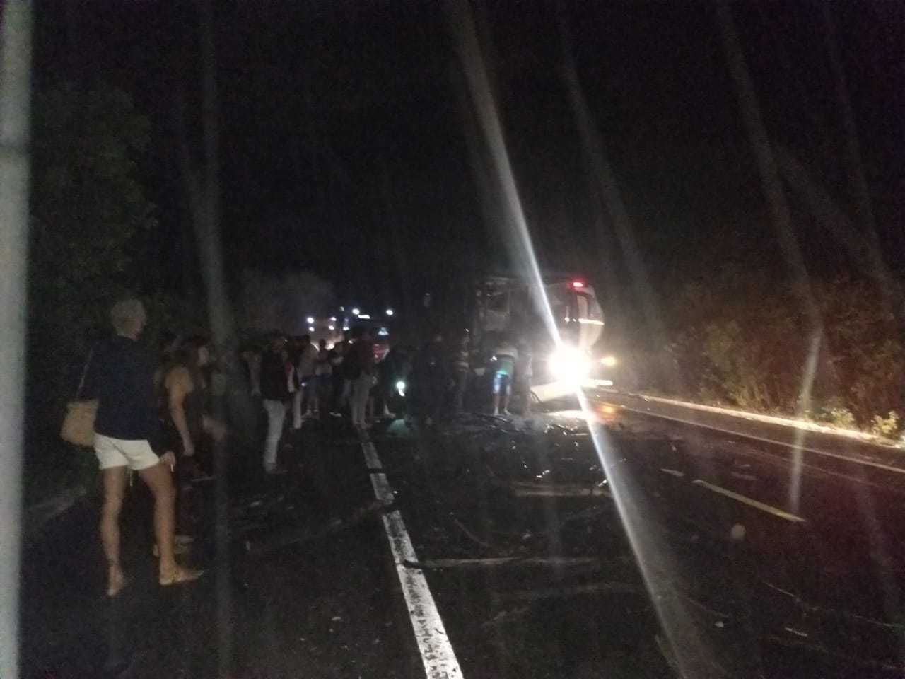 De acordo com informações da Polícia Rodoviária Federal, o caminhão estava parado e sem sinalização nas margens da rodovia quando o ônibus colidiu na sua traseira.