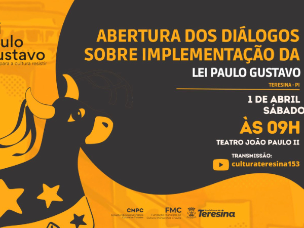 Com o objetivo de promover um amplo debate sobre a Lei Paulo Gustavo em Teresina (PI), bem como ouvir toda a cadeia produtiva cultural e os demais atores da sociedade civil, a Prefeitura Municipal de Teresina (PMT), por meio da Fundação Municipal de Cultura Monsenhor Chaves (FMC), e em parceria com o Conselho Municipal de Política Cultural de Teresina (CMPC), realizará uma plenária sobre a lei de incentivo cultural. Neste primeiro momento a plenária ocorrerá de forma presencial neste sábado, 1 de abril, a partir das 09h, no Teatro Municipal João Paulo II, que fica localizado no Bairro Parque Ideal, na zona Sudeste da capital piauiense, sendo a mesma transmitida ao vivo através da página Cultura Teresina no Youtube.