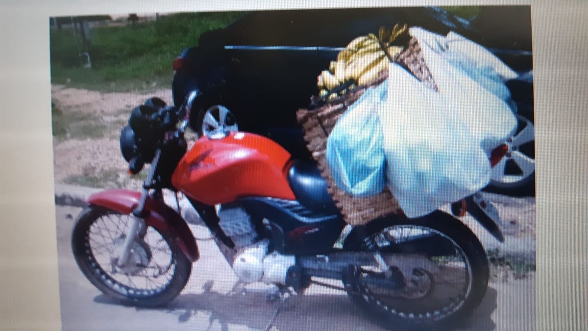 A motocicleta transportava carga incompatível conforme a Resolução Contran Nº 356/10 e apresentava pneus em mau estado de conservação gerando perigo de dano.