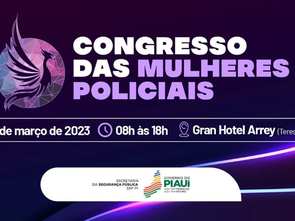 Em comemoração ao mês da mulher, a Secretaria de Segurança Pública do Piauí (SSP-PI) promoverá o primeiro Congresso das Mulheres Policiais, nesta quarta-feira (29), das 08h às 18h, no Gran Hotel Arrey, em Teresina. O evento tem o objetivo de promover a integração e a valorização das mulheres que atuam nas forças de segurança em todo o Estado.