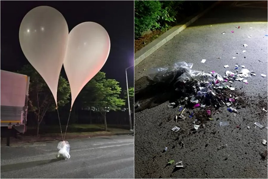 Fotografias divulgadas mostraram balões inflados com sacos plásticos amarrados a eles, contendo lixo, incluindo uma garrafa com o nome de uma fábrica norte-coreana. Mais de 90 balões foram detectados até então, alguns pousaram no solo e outros ainda estavam no ar, relatou a Yonhap News, citando fontes militares.