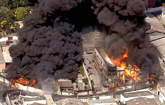 Há pequenos focos de incêndio, espalhados pelos galpões, que ficam na rua das Antilhas, número 571, segundo imagens captadas pelo helicóptero da Record TV.